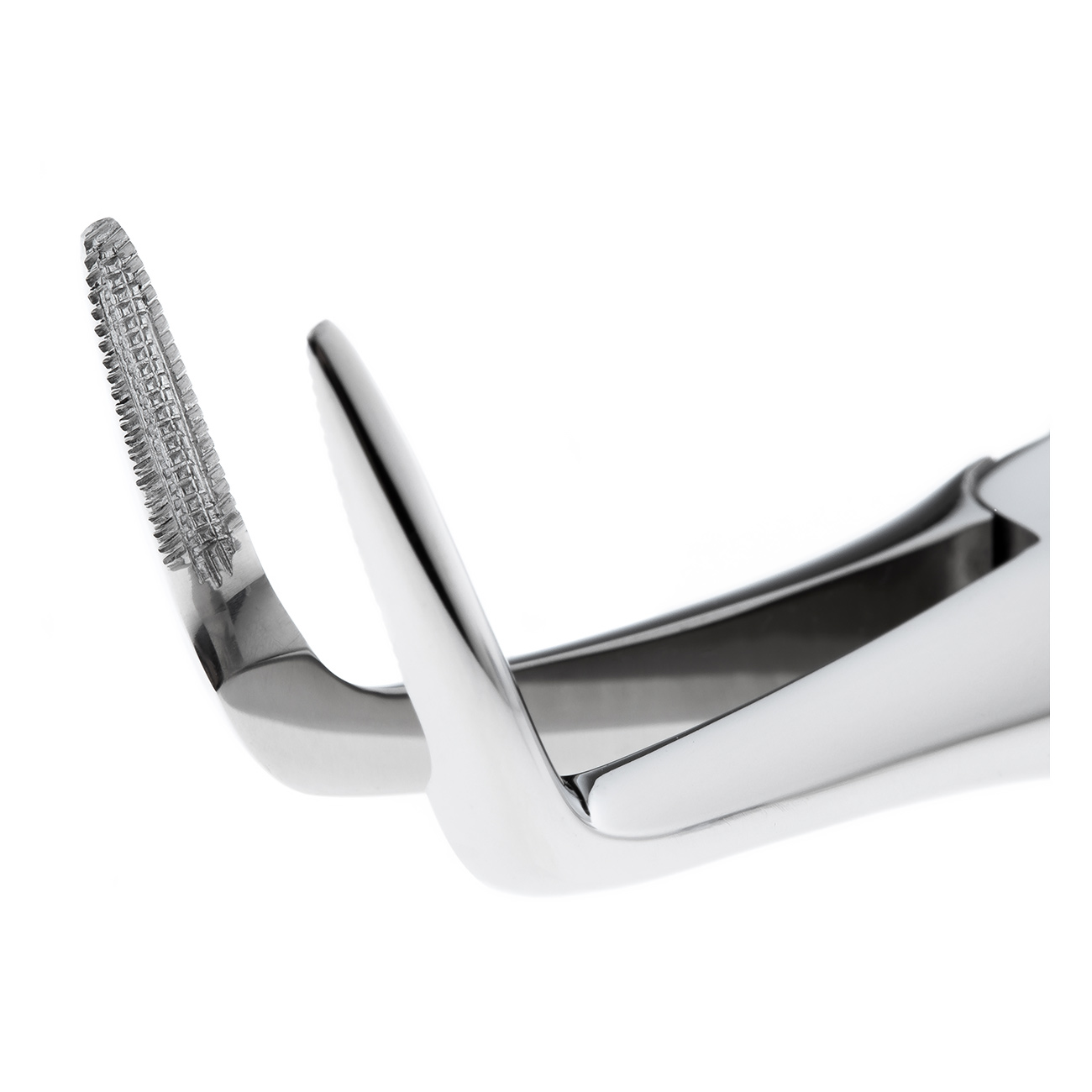 Стандартные ручки щипцов снаружи покрыты ретенционным узором, предотвращающим скольжение фаланг пальцев в перчатке. Особенности: